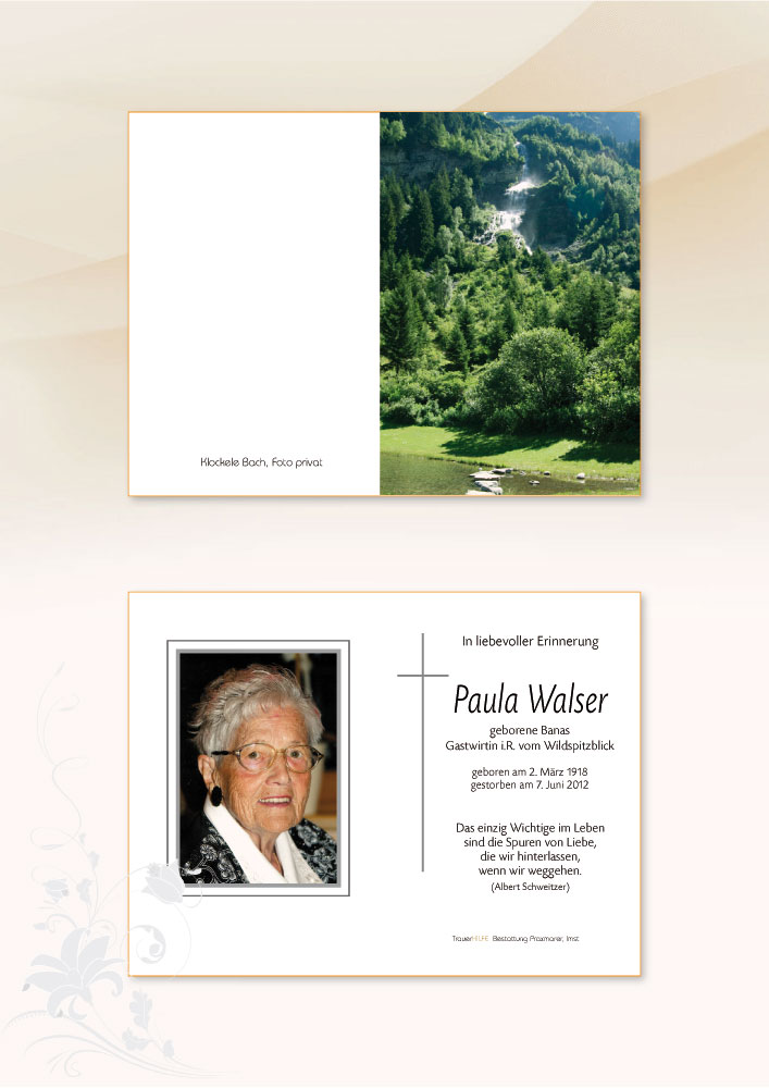 Behaltet die schönen Erinnerungen an eure liebe Mutter bei, denn so werdet ihr niemals getrennt sein und euch in einer anderen Welt wieder in die Arme schließen können.