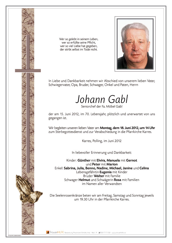 nach des Lebens Müh‘ und Leid. Aufrichtige Anteilnahme entbietet Erika u. Kurt Scheiber16.06.2012 13:48 - Fam. Erika u. Kurt Scheiber