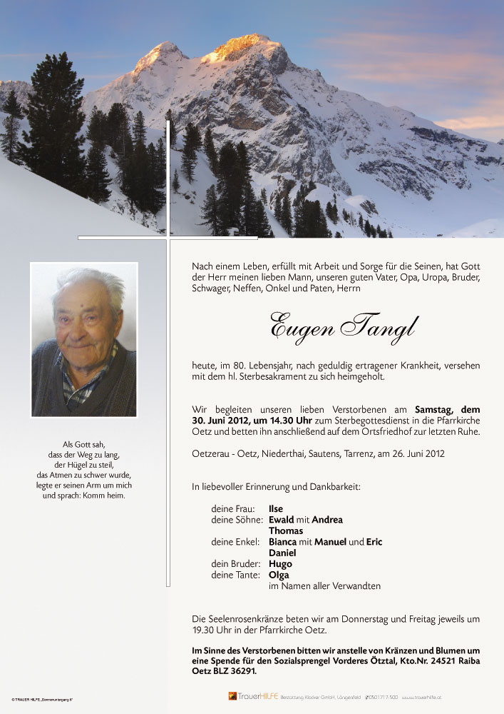 Aufrichtige Anteilnahme am Heimgang Eures lieben Eugen,