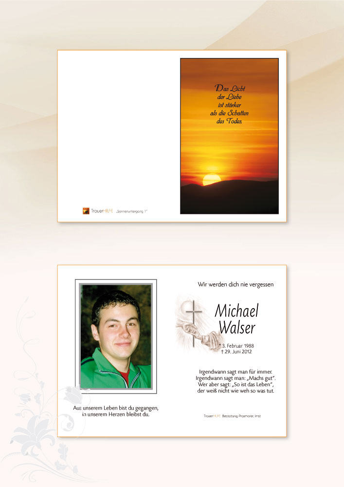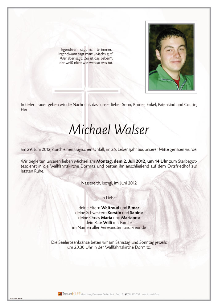 Ich wünsche euch viel Kraft in der schwierigen Zeit.Aber euer Michael wird immer in euren Herzen sein und vom Himmel auf euch aufpassen.Habe vor 3 jahren meinen Bruder Michael verloren und es ist sehr schwer,er hinterlässt eine sehr grosse Lücke in unserem Leben.