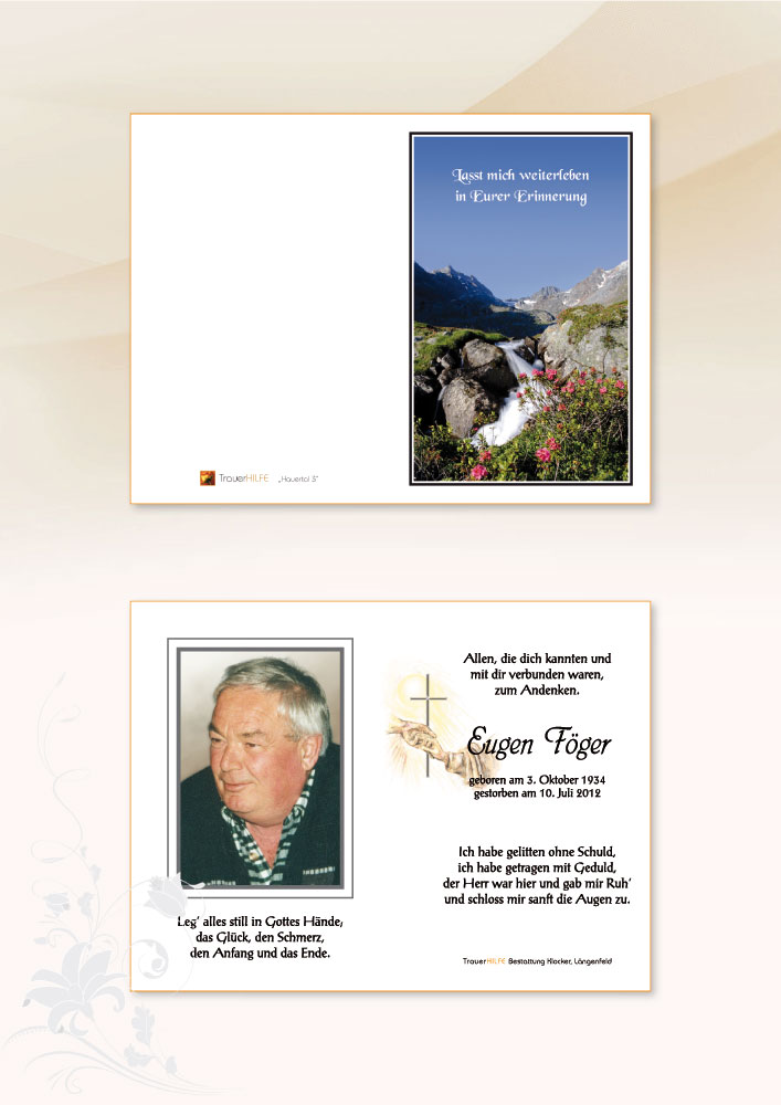 Aufrichtige Anteilnahme am Tode Eures lieben Eugen entbieten Familie Scharfetter-Praxmarer Gasthof Andreas Hofer Umhausen.11.07.2012 12:30 - Familie Scharfetter Umhausen
