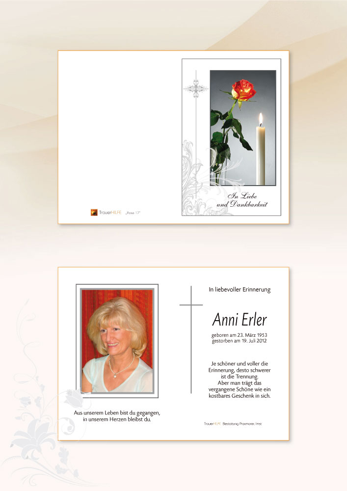 Unser tiefstes mitgefühl zum Ableben meiner ehemaligen Schwägerin und Tante