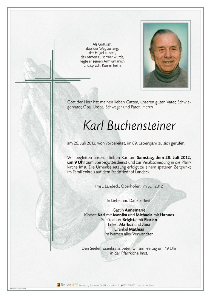 Möge Karl in Gottes Hand geborgen und daheim sein!