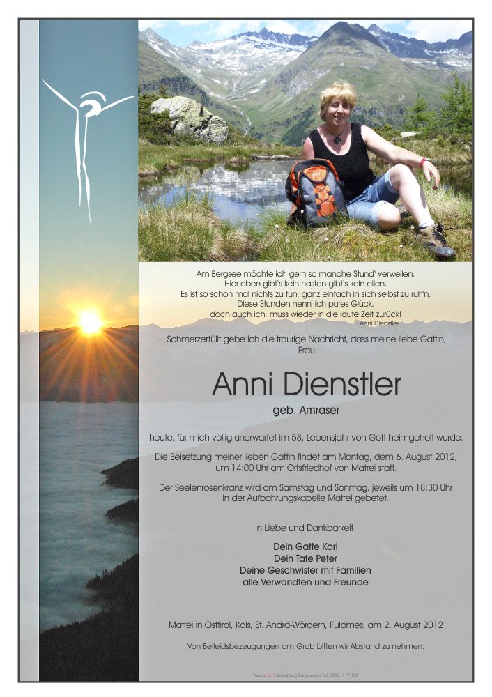 IM GLAUBEN AN DIE AUFERSTEHUNG UND MIT DEM VERSPRECHEN "ANNI" IN UNSEREM GEBET ZU GEDENKEN ,