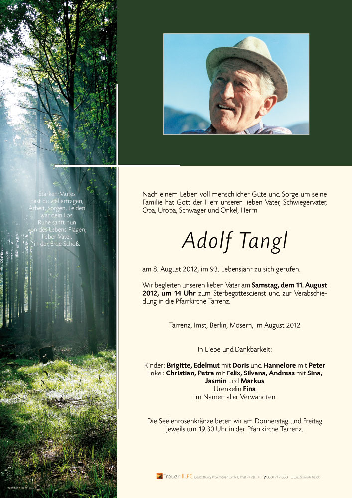 Friedhof Tarrenz, † 08.08.2012 (92 Jahre)