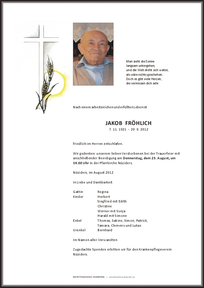 Friedhof Nüziders, † 20.08.2012 (90 Jahre)