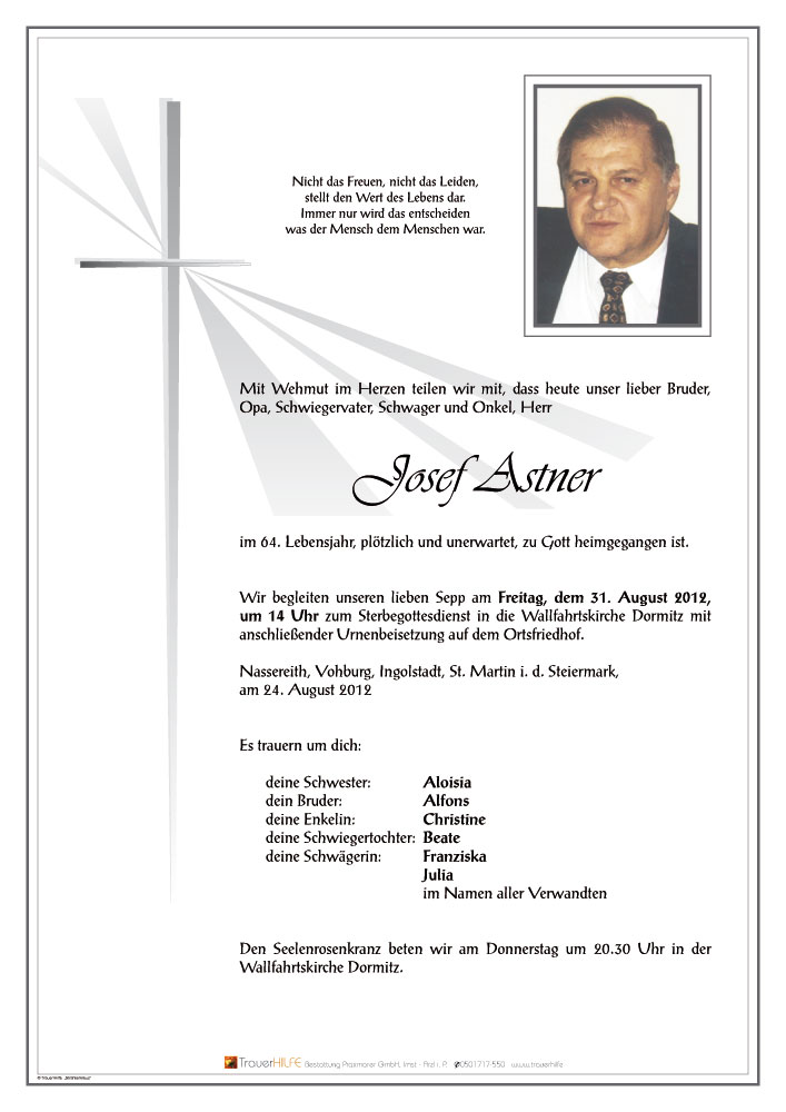 Neue Kerze für Josef Astner entzünden.