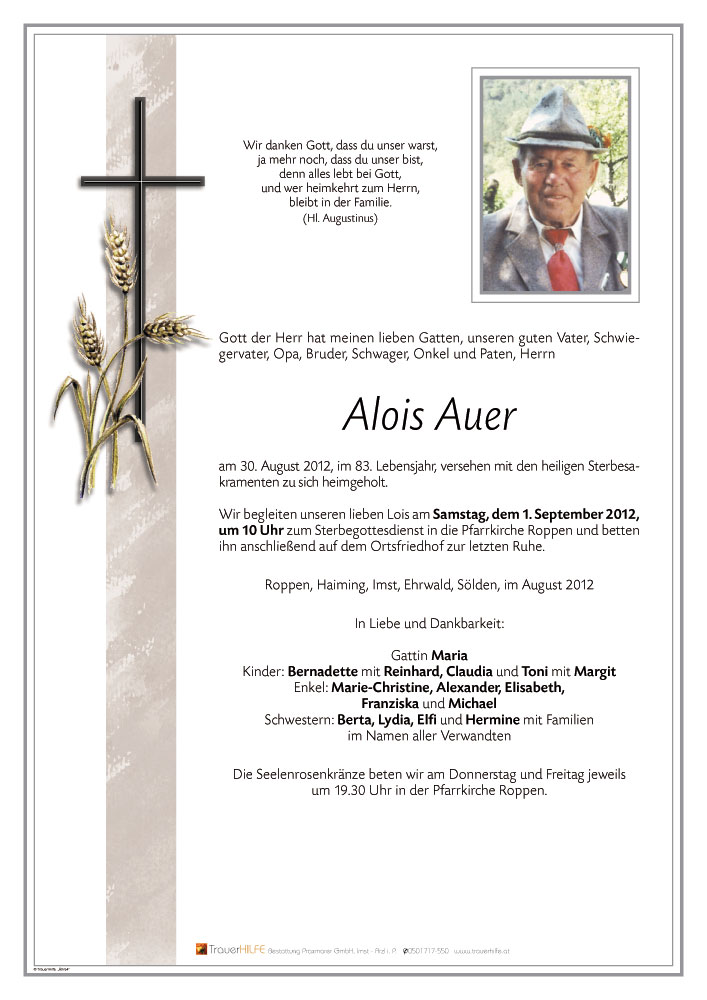 Aufrichtige Anteilnahme am Tod eures Vaters, Schwiegervaters und Opas entbietet Anita Zumtobel02.09.2012 23:23 - Anita Zumtobel