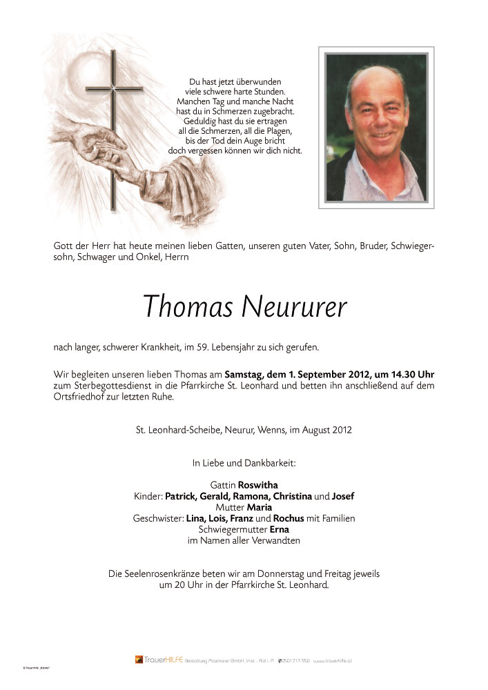 Lieber Thomas du warst immer ein sehr lustiger und positiv denkender Mensch so bleibst du uns auch alls Nachbar in guter Erinnerung, machs gut auf Deiner Reise.........