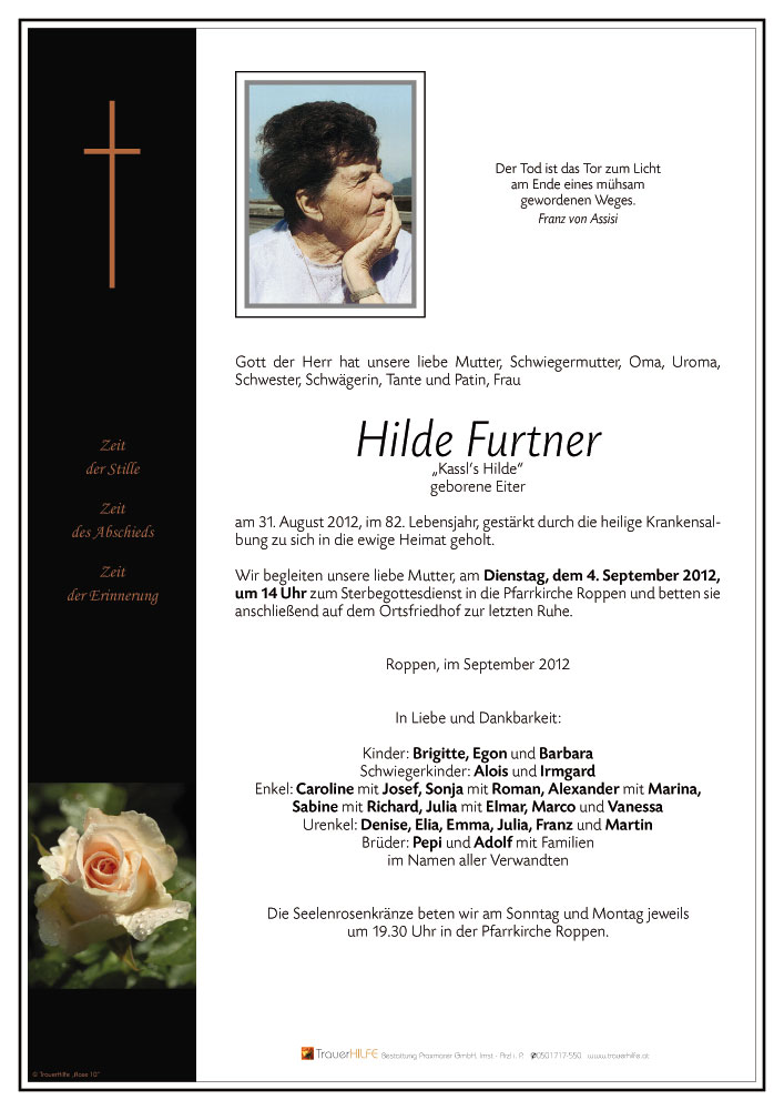 Neue Kerze für Hilde Furtner entzünden.