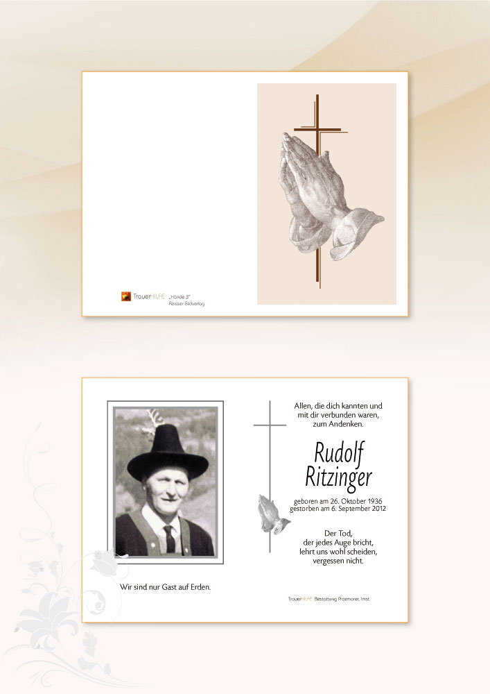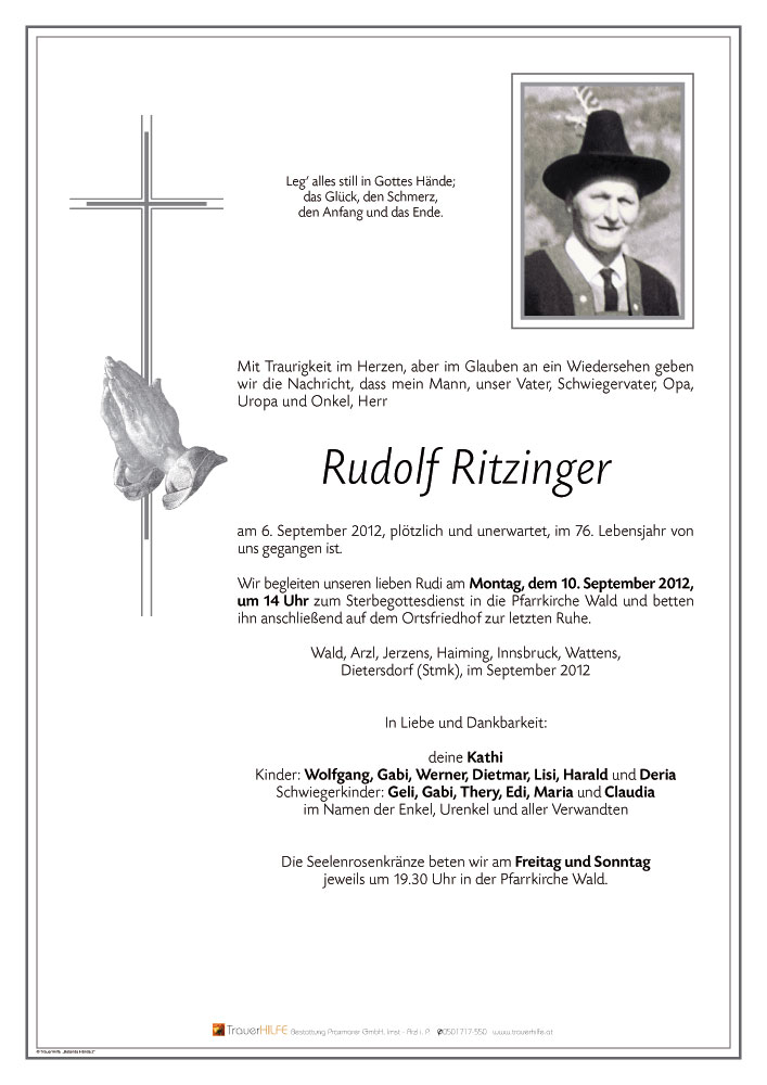 Liebe Familie Ritzinger, liebe Lisi, Gabi und Harald ! Niemand ist fort den man geliebt, denn überallleuchten die Spuren seines Lebens.