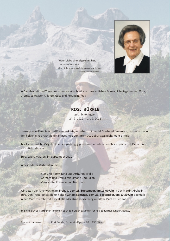 Friedhof Bürs St. Martin, † 14.09.2012 (89 Jahre)
