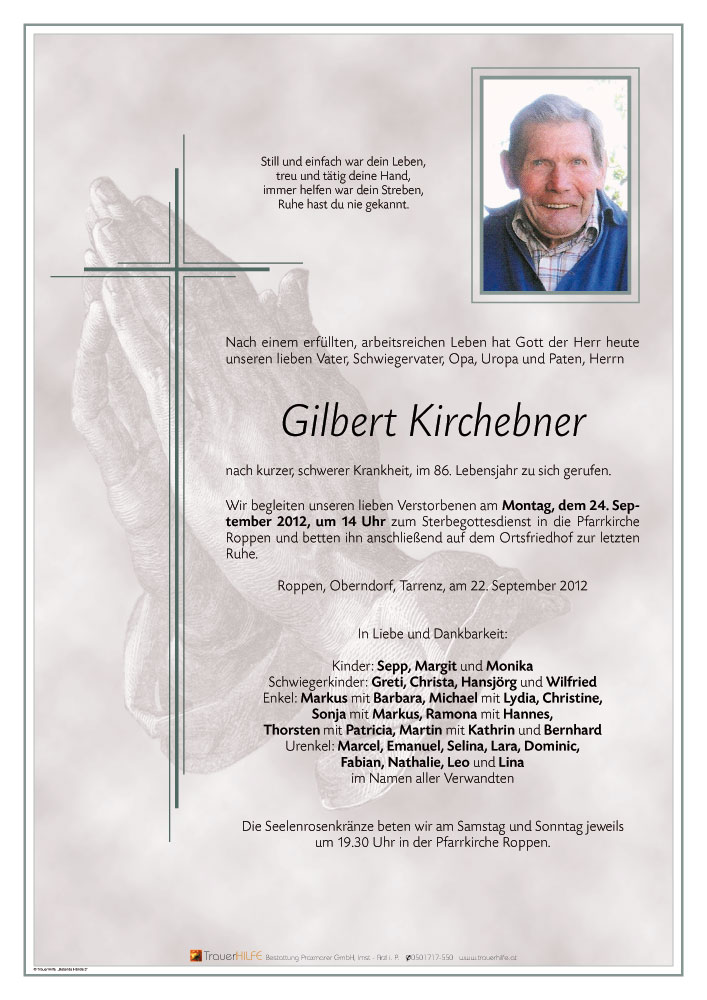 Neue Kerze für Gilbert Kirchebner entzünden.