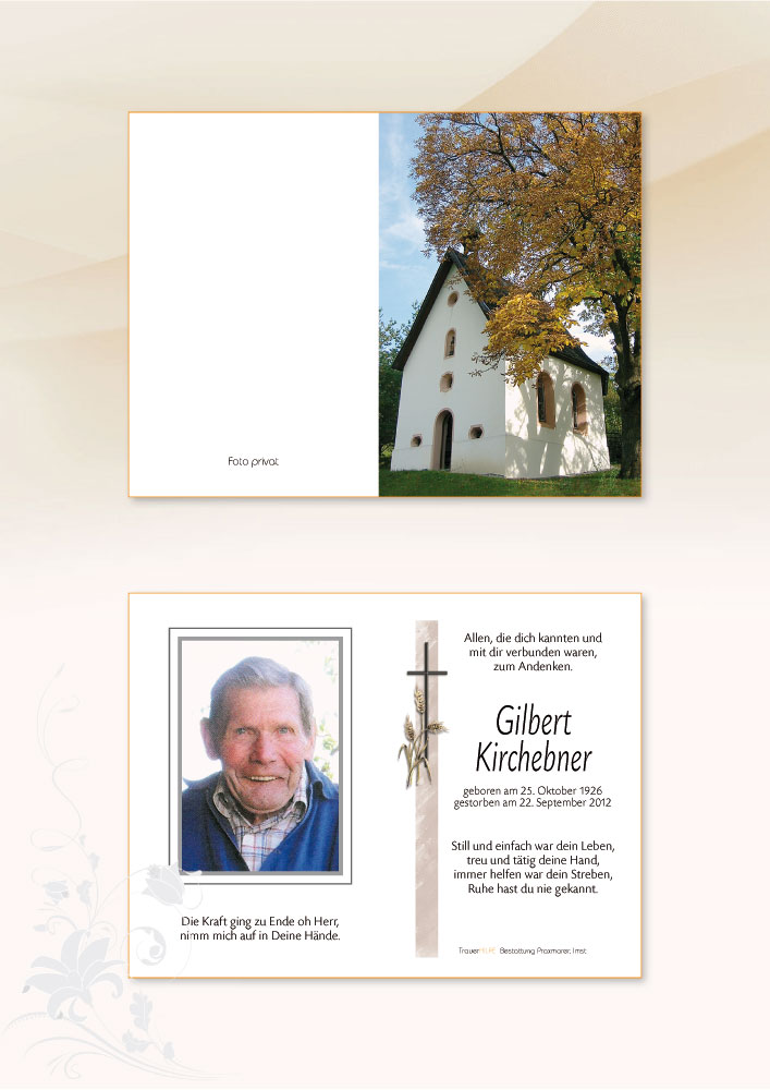 Was du uns im Leben hast gegeben,dafür ist jeder Dank zu klein.Du hast gesorgt für deine Lieben,von früh bis spät, tagaus, tagein.Du warst im Leben so bescheiden,nur Pflicht und Arbeit kanntest du.Mit allem warst du stets zufrieden,nun schlafe sanft in stiller Ruh.
