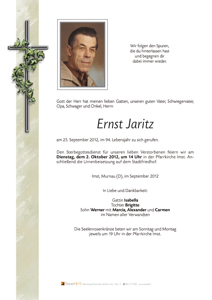 Bestattung wurde durchgeführt von: Daniel Klocker Bestattung Praxmarer GmbH Thomas Walch Str. 4 6460 - Imst Tel.: 05412 64250 zum Bestatter