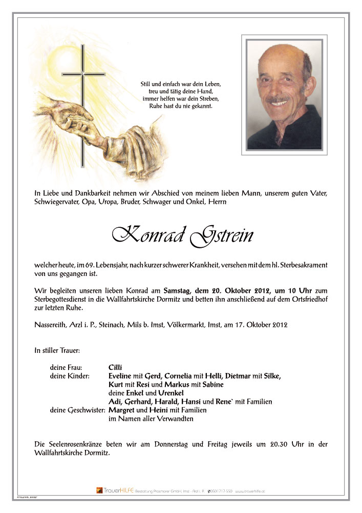 Unsere aufrichtige Anteilnahme18.10.2012 09:57 - Friedrich Gstrein mit fam.