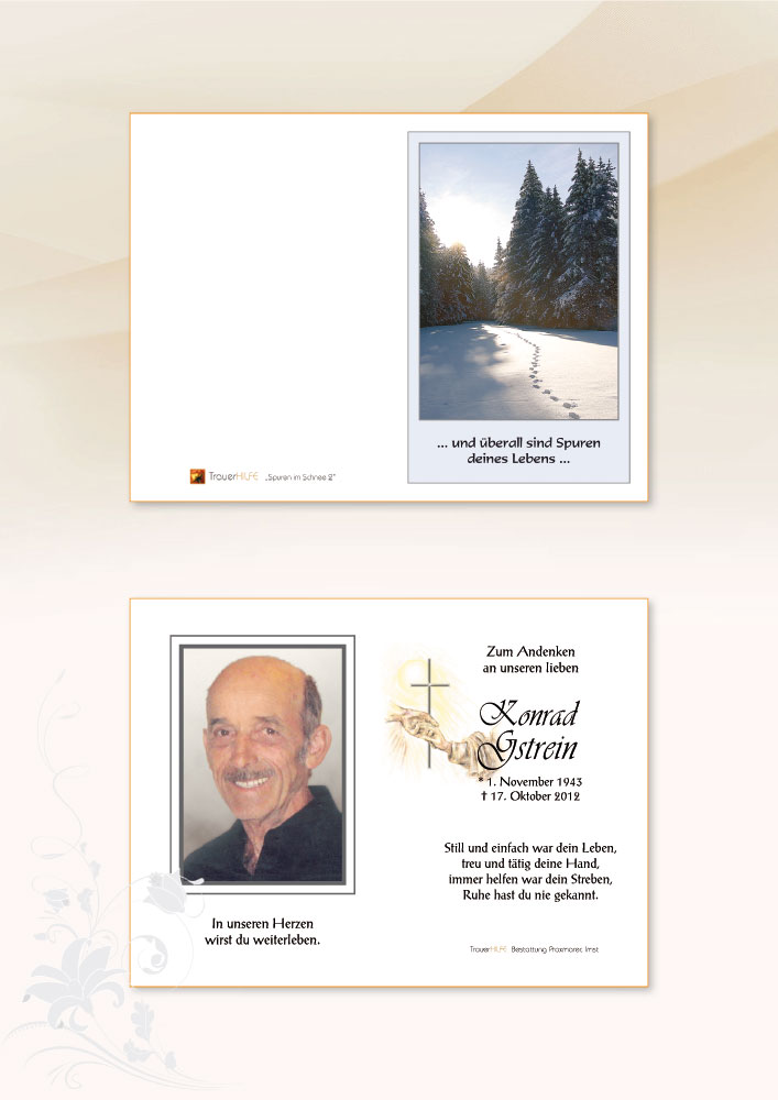 Und immer sind irgendwo Spuren deines Lebens: Gedanken, Bilder, Augenblicke und gefühle. Sie werden uns immer an dich erinnern und dich dadurch nie vergessen lassen. In Liebe dein Enkel marcell mit familie