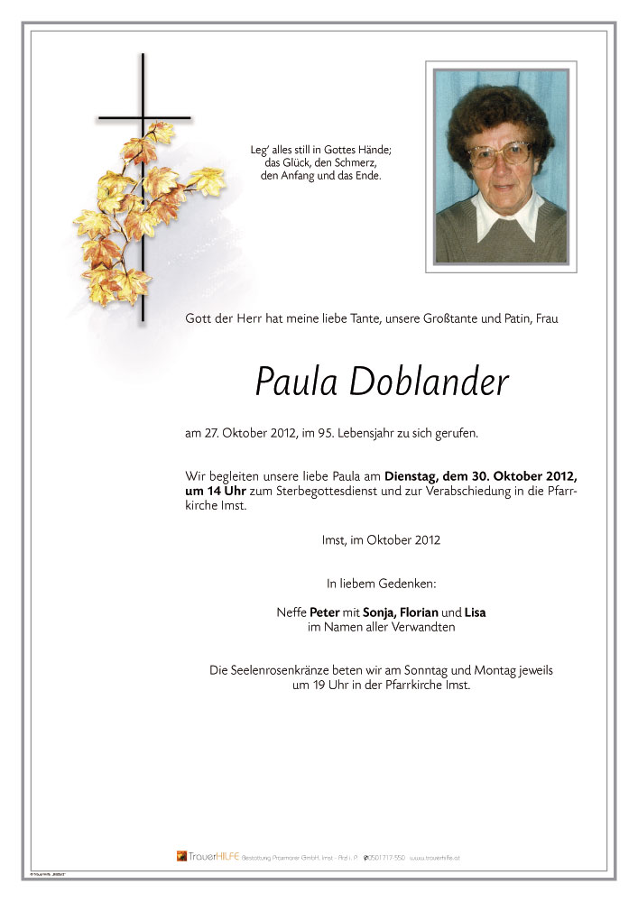 Bestattung wurde durchgeführt von: Daniel Klocker Bestattung Praxmarer GmbH Thomas Walch Str. 4 6460 - Imst Tel.: 05412 64250 zum Bestatter