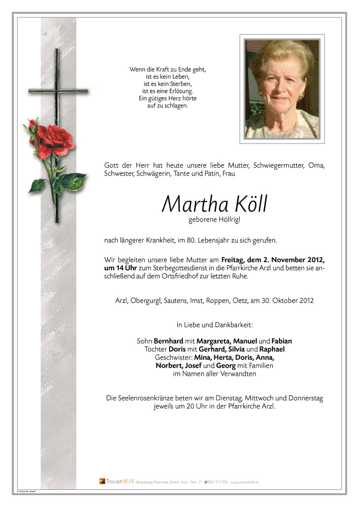 Neue Kerze für Martha Köll entzünden.