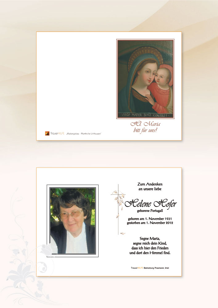 Neue Kerze für Helene Hofer entzünden.