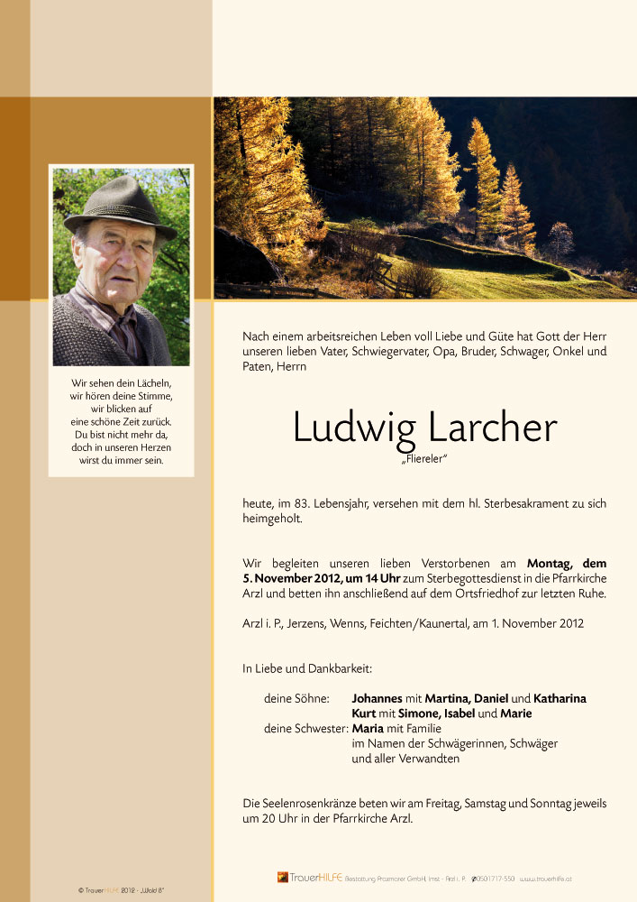 wir entbieten Euch unser aufrichtiges Beileid zum Tode Eures Vaters und Großvaters.