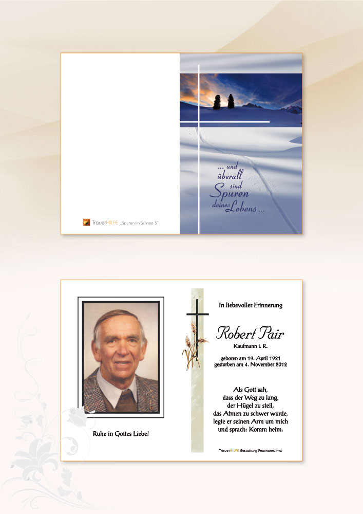 Als Gott sah,dass der Weg zu lang,der Hügel zu steil,das Atmen zu schwer wurde,legte er seinen Arm um michund sprach: Komm heim.