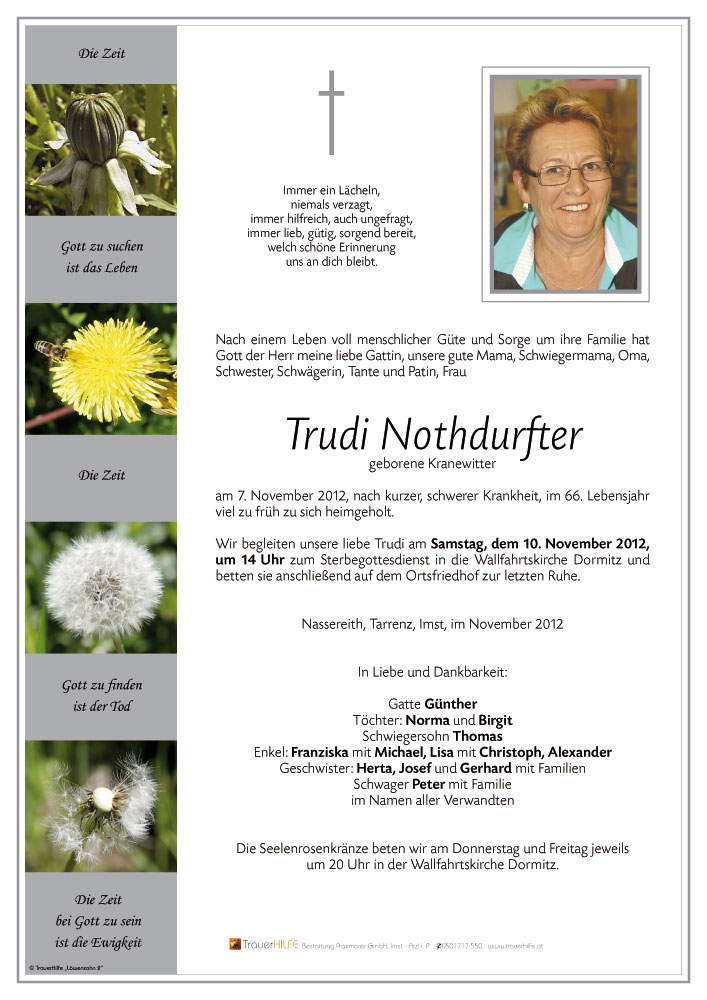 Neue Kerze für Trudi Nothdurfter entzünden.