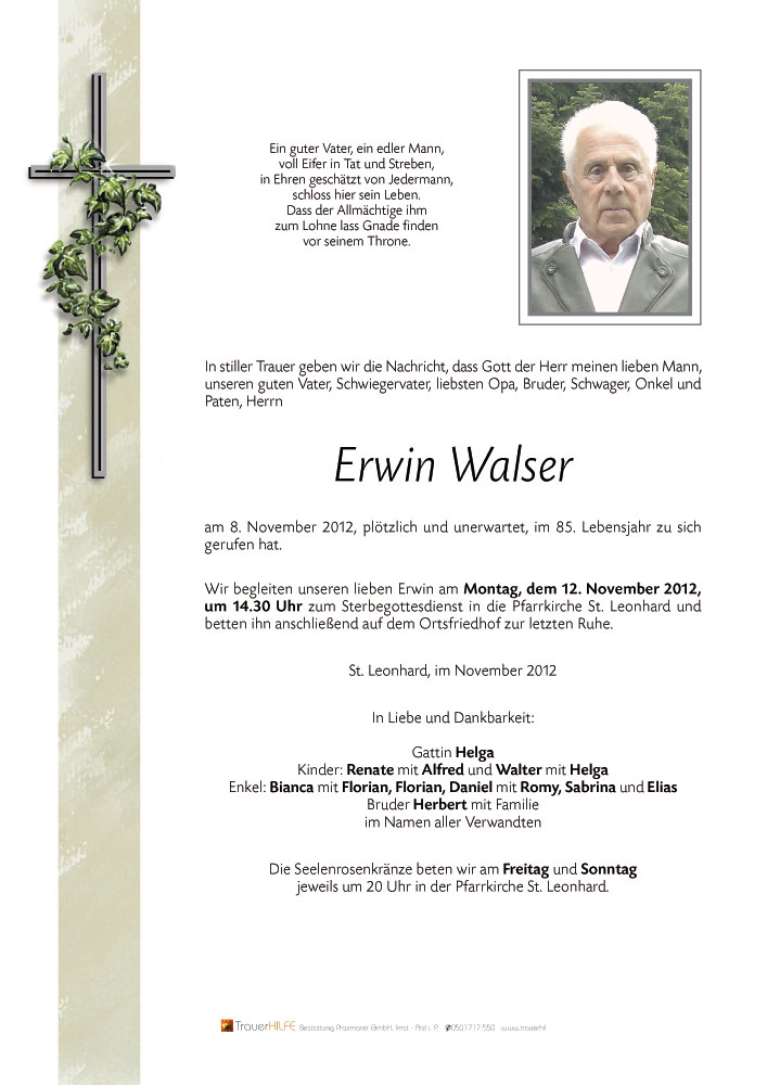 Neue Kerze für Erwin Walser entzünden.
