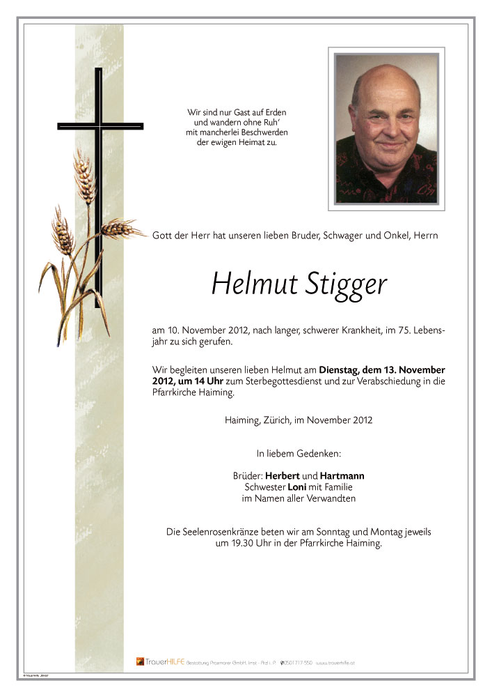 Friedhof Haiming, † 10.11.2012 (74 Jahre)