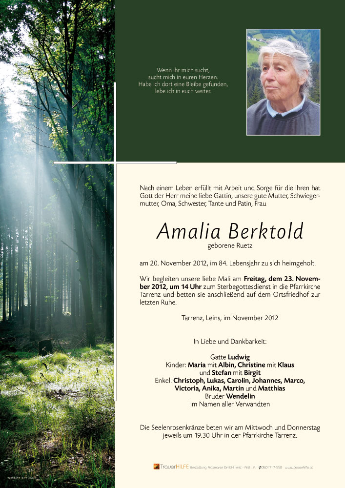 Neue Kerze für Amalia Berktold entzünden.