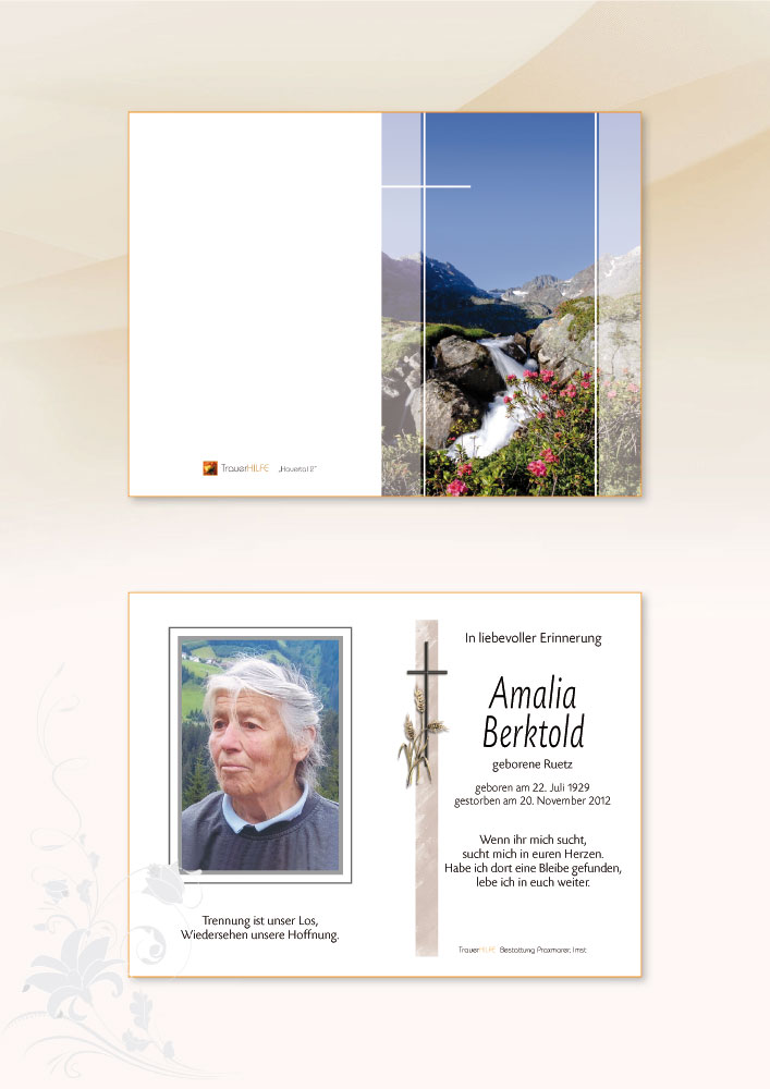 Still und einfach war dein Leben,treu und tätig deine Hand,immer helfen war dein Streben,Ruhe hast du nie gekannt.