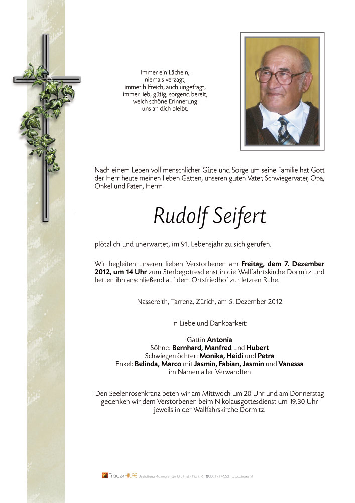 Neue Kerze für Rudolf Seifert entzünden.