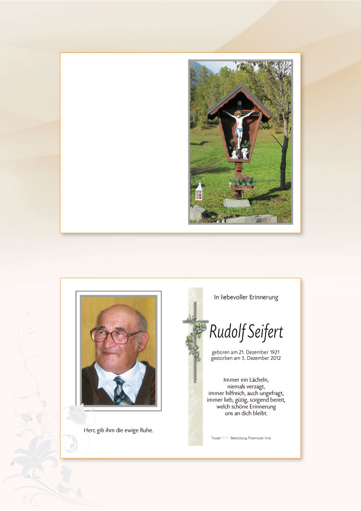 Meine aufrichtige Anteilnahme am Tode deines lieben Vaters Eures Seifert Opas .