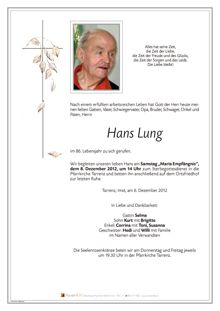 In tiefer Verbundenheit und Anteilnahme07.12.2012 14:58 - Fam. Neururer Hans, Pfunds