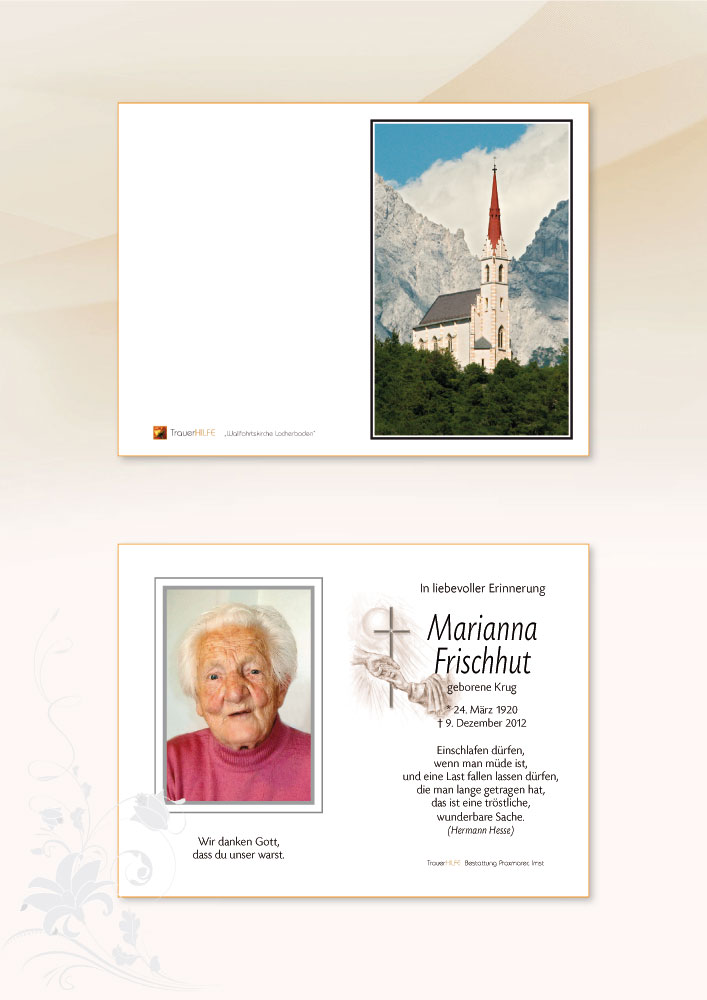 Bestattung wurde durchgeführt von: Daniel Klocker Bestattung Praxmarer GmbH Thomas Walch Str. 4 6460 - Imst Tel.: 05412 64250 zum Bestatter