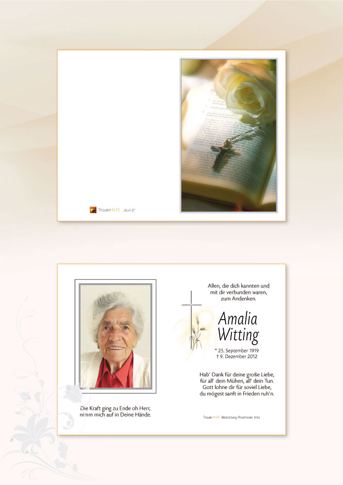 Als Gott sah,dass der Weg zu lang,der Hügel zu steil,das Atmen zu schwer wurde,legte er seinen Arm um michund sprach: Komm heim.
