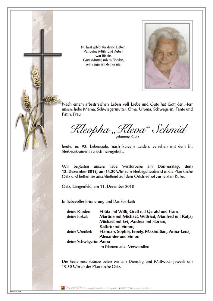 Liebe Gotl, liebe Gretl und lieber Franz und Trauerfamilien!