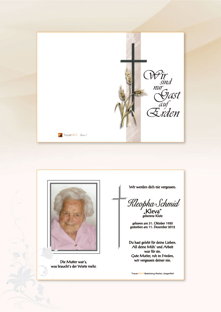 Zum Heimgang eurer Mutter entbietet dir