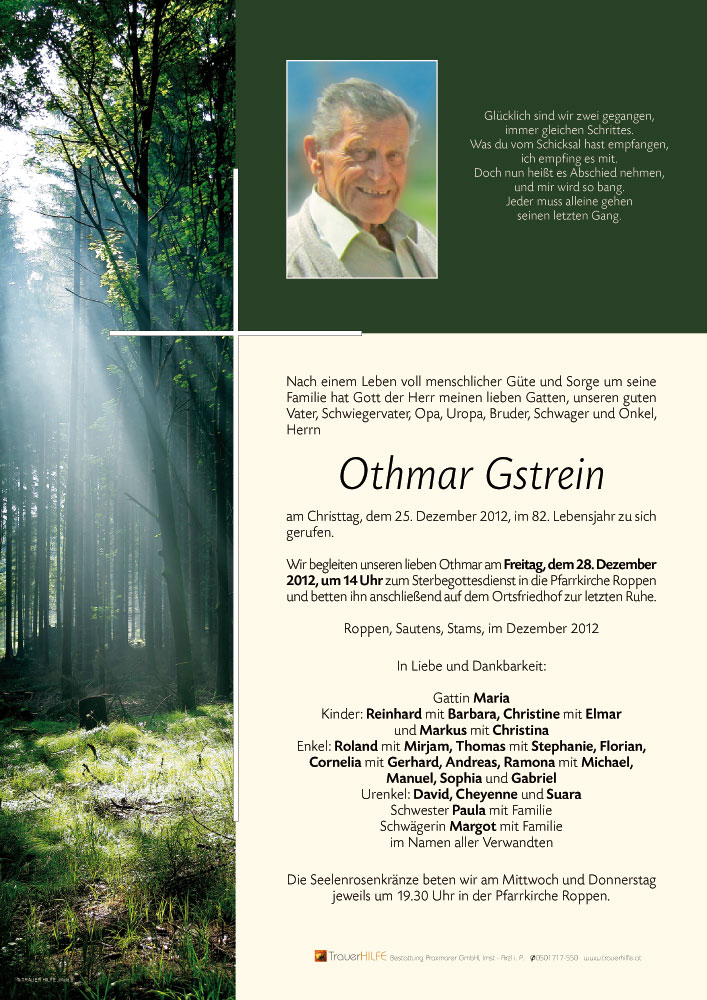 Während euer lieber Othmar nicht mehr in der Lage sein wird eure Hände anzufassen, wird er für immer in der Lage sein, euer Herz zu berühren.