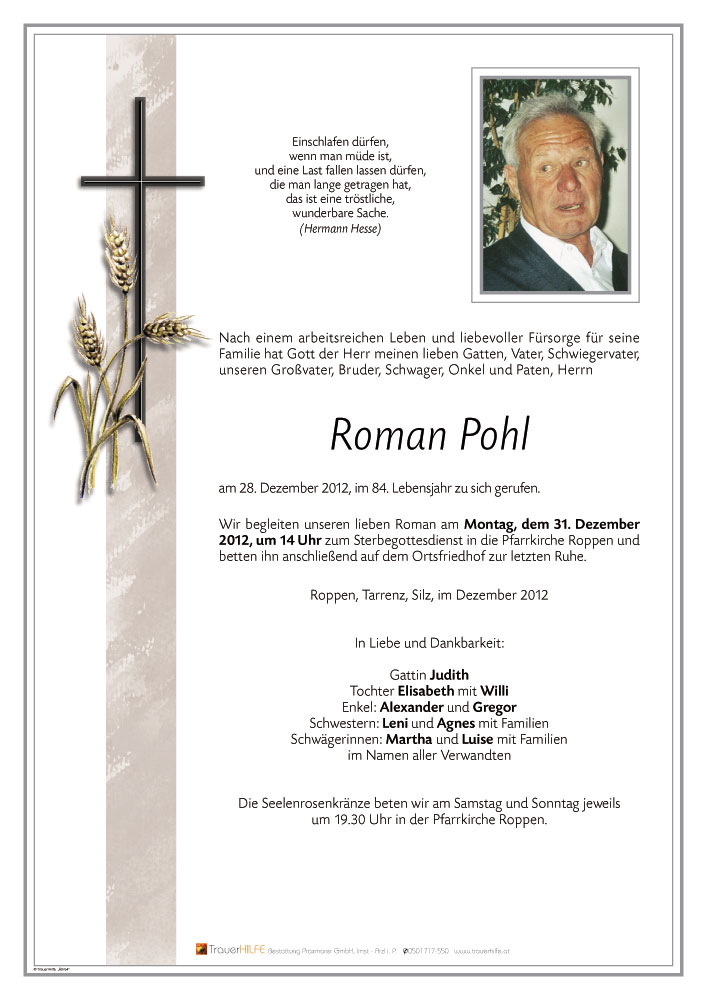 Friedhof Roppen, † 28.12.2012 (83 Jahre)