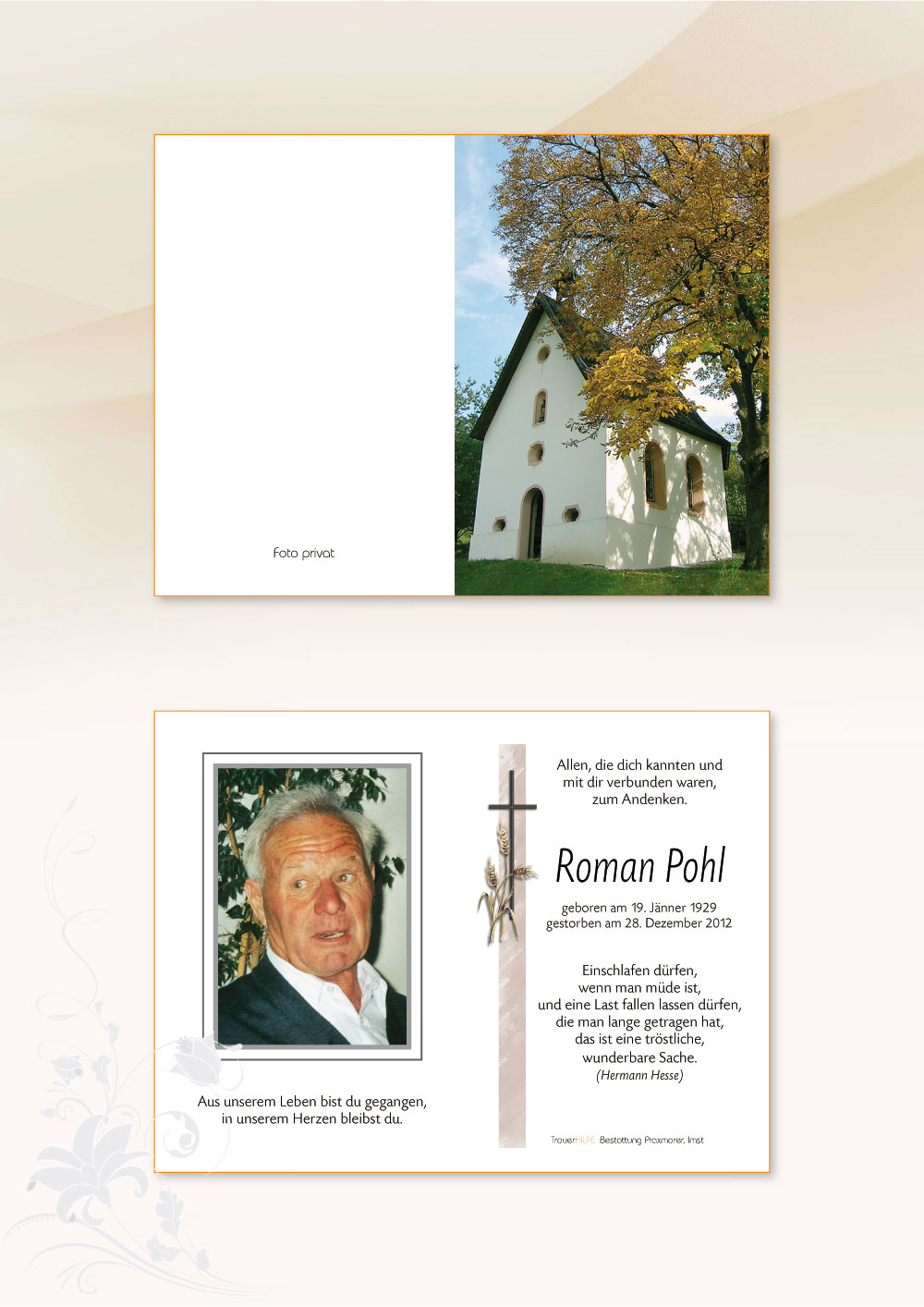 Bestattung wurde durchgeführt von: Daniel Klocker Bestattung Praxmarer GmbH Thomas Walch Str. 4 6460 - Imst Tel.: 05412 64250 zum Bestatter