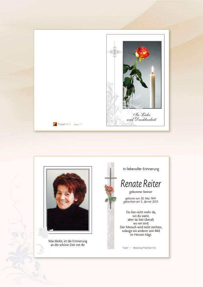 Am Ableben deiner lieben Gattin und eurer guten Mama und Oma möchten