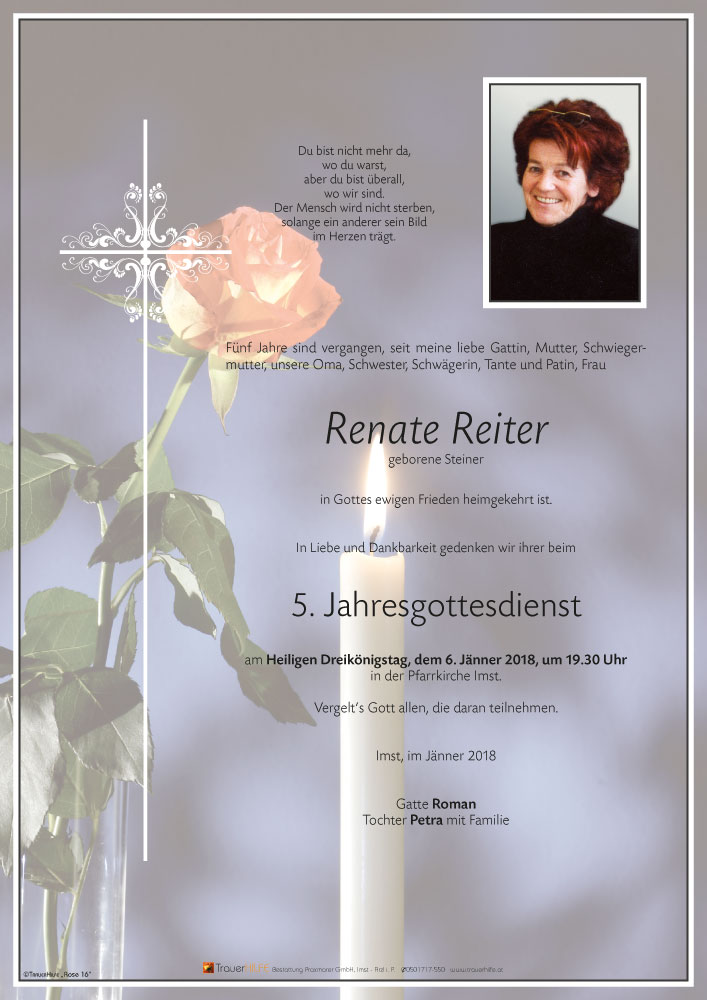Neue Kerze für Renate Reiter entzünden.