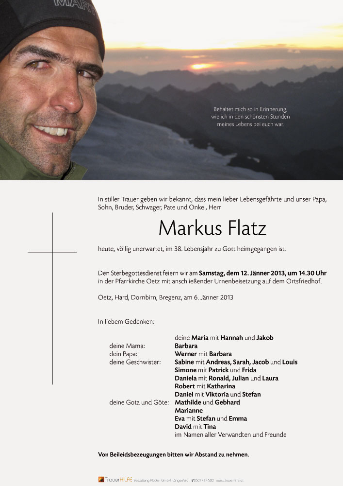 Unser herzliches Beileid an Maria Flatz mit Kinder und Familie.