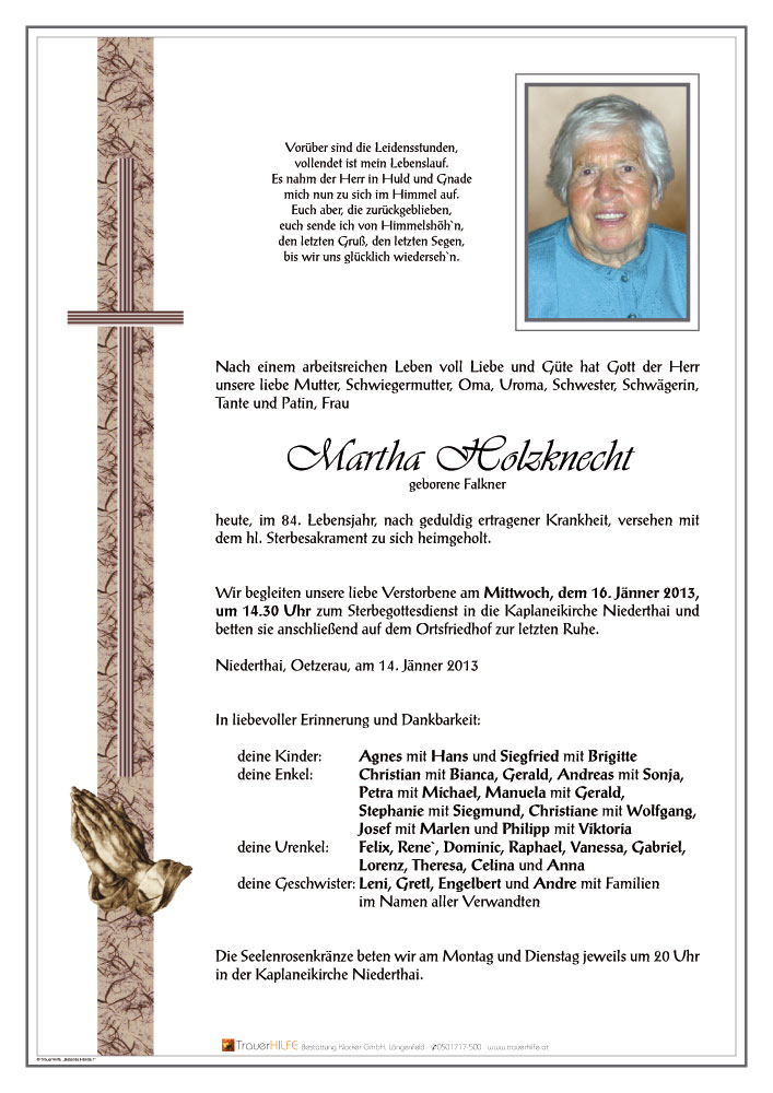 Herzliche Anteilnahme am Heimgang eurer lieben Martha entbietet euch Sabine Petter16.01.2013 15:59 - Sabine Petter