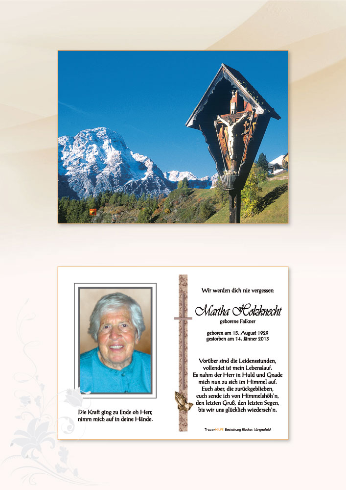 Als Gott sah,dass der Weg zu lang,der Hügel zu steil,das Atmen zu schwer wurde,legte er seinen Arm um michund sprach: Komm heim.