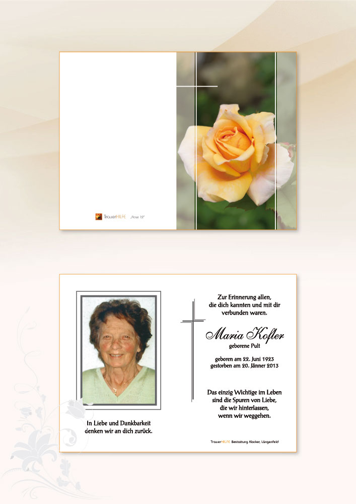 Aufrichtige Anteilnahme am Heimgang von eurer lieben Maria entbietet euch von ganzem Herzen