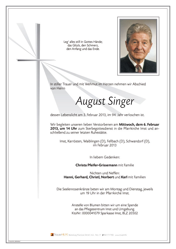 Aufrichtige Anteilnahme von Familie Hansjörg und Georg Kapferer aus Zirl.