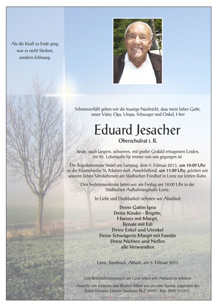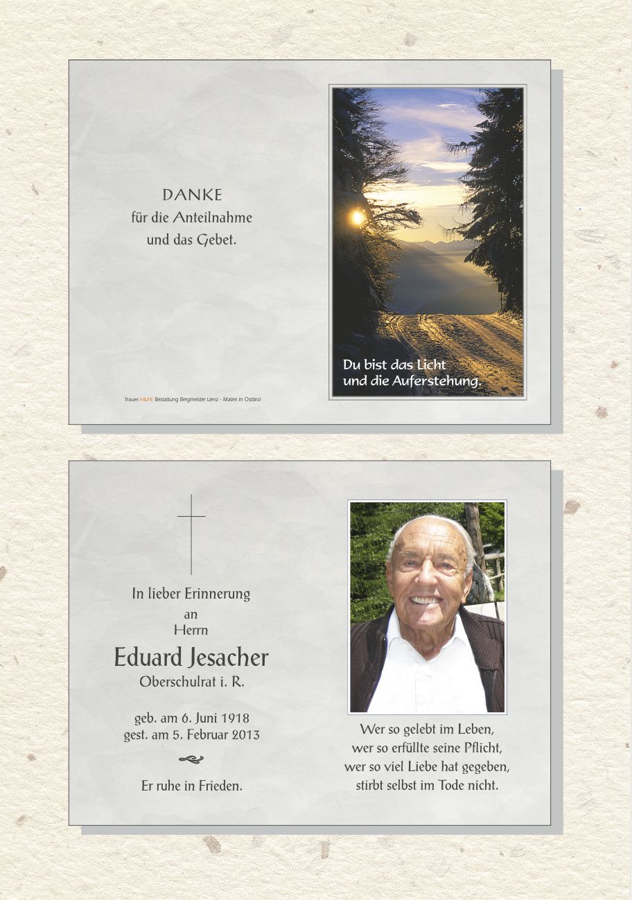 Neue Kerze für Eduard Jesacher entzünden.