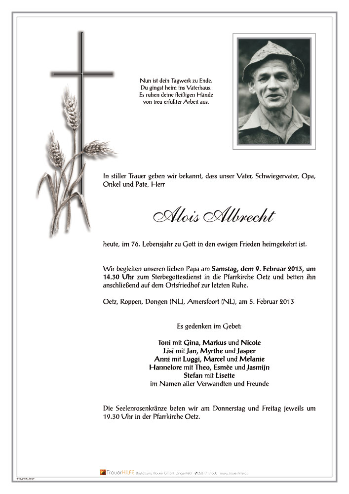 Aufrichtige Anteilnahme Alois,Marianne,Anita und Markus mit Familie07.02.2013 23:59 - Marianne Santer
